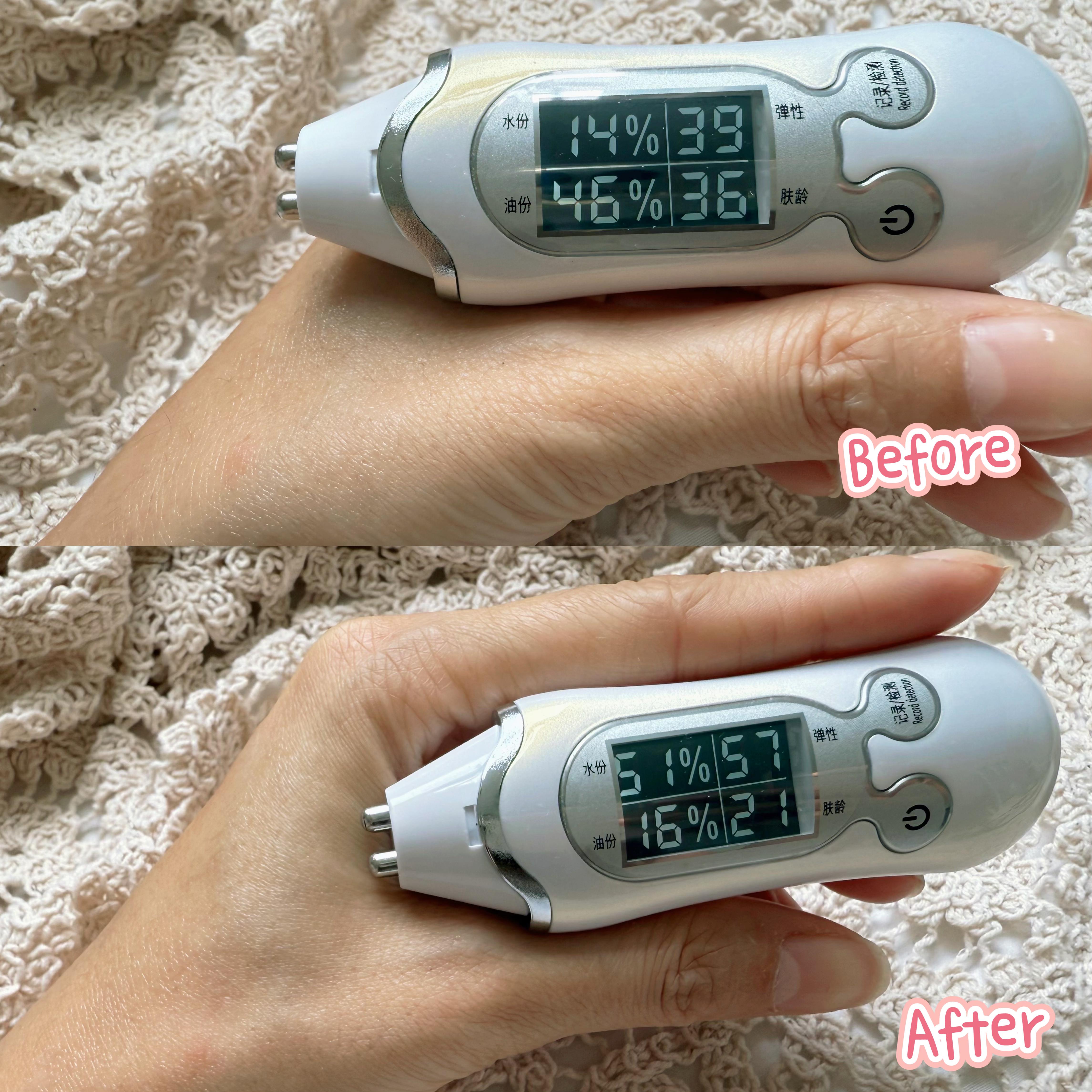即時保濕效果滿意,短短時間由原本14%上升到51%,可見即時補水效果顯著。