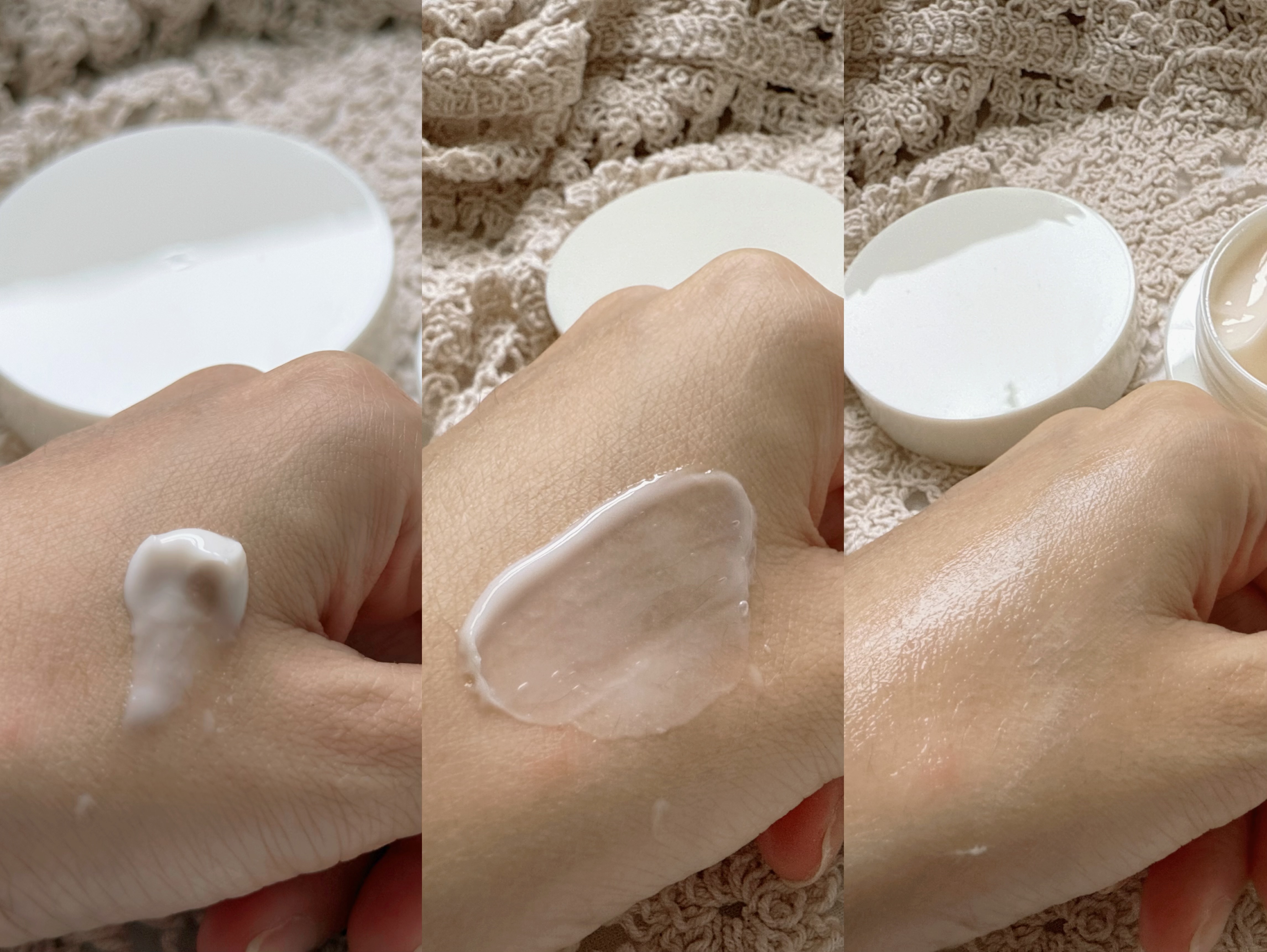 質地豐潤易吸收,容易推開,特別適合秋冬的天氣。使用後肌膚感覺滋潤,迅速吸收,讓人十分滿意。
