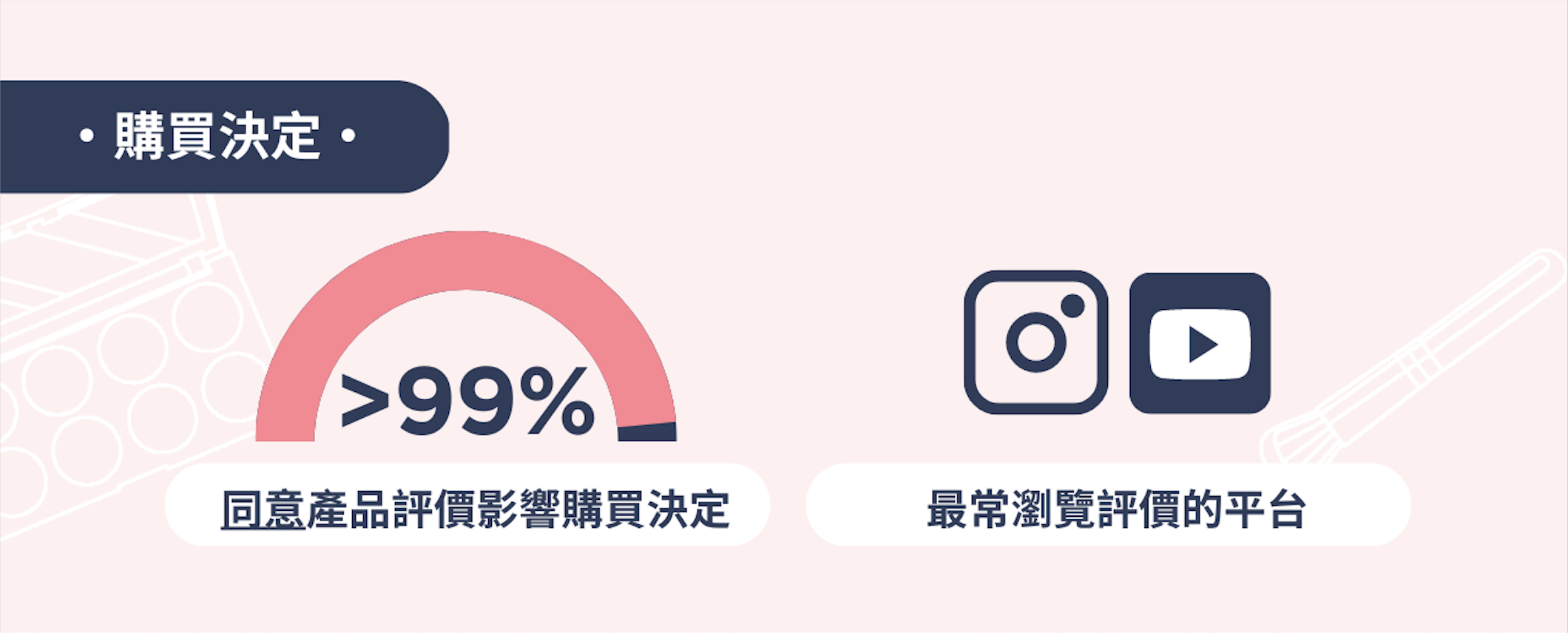 對於Z世代,對於線上線下並沒有明顯的界線,她們會先於網上獲取美妝產品資訊,99% Gen Z 受訪者認同網上的產品評價或素人試用意見能幫助做購物決策,比起朋友圈推薦、品牌廣告或明星代言更為可信。而Instagram(27%) 為GenZ最常用作搜尋產品評價的平台,其次為YouTube (24.6%),FaceBook 比Google 更低,只佔14%。