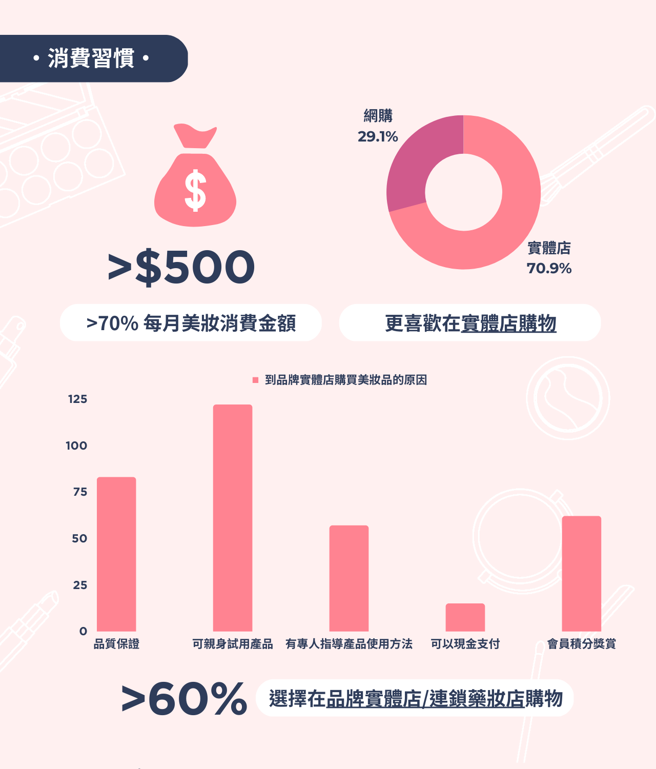 - 捨得花費於美妝品:喜歡就買,逾7成每月花費超過$500