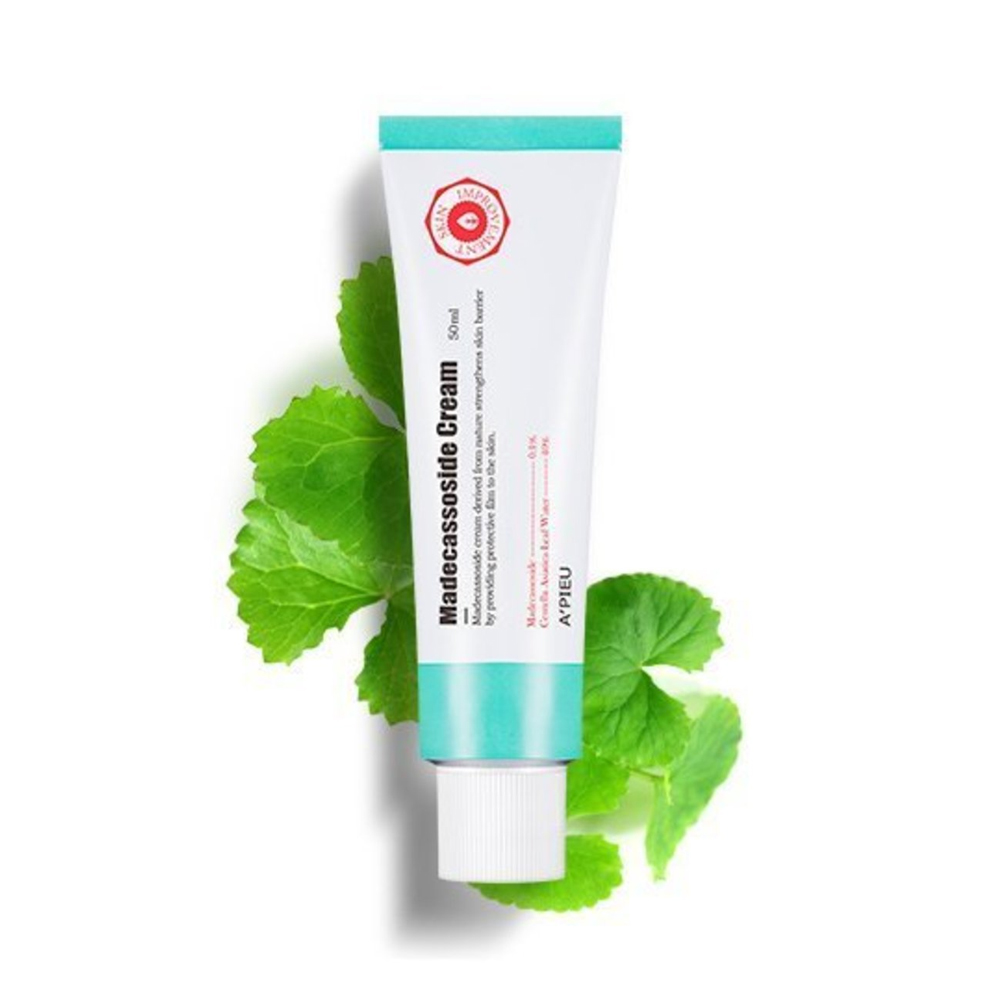 A'PIEU 積雪草全面修復霜50ml。能修復因有害環境變得緊繃的受損肌膚 ,臉上有痘痘,痘印者,經常使用,可以淡化痘印。具有修復傷口及抗菌的特性,在傷口復原過程中,積雪草可改善角質、細胞修復、調節角質細胞再生。