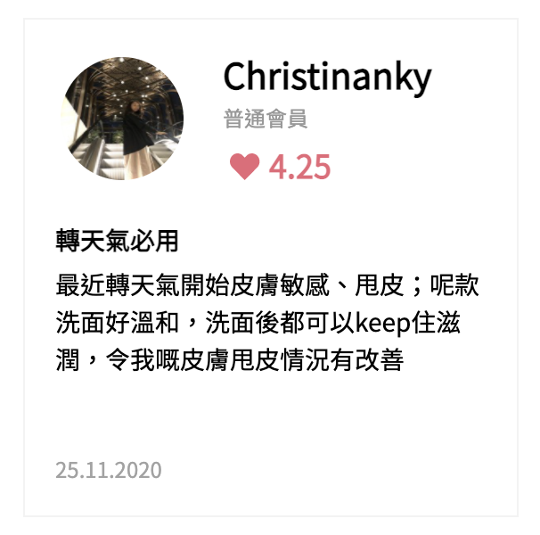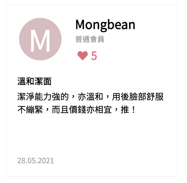 保濕度 ⭐⭐⭐⭐4分 溫和度 ⭐⭐⭐⭐⭐ 5分🥇 |