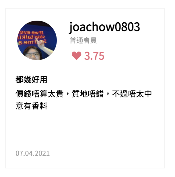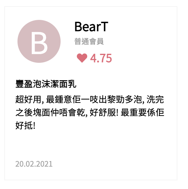 保濕度 ⭐⭐⭐3分 溫和度 ⭐⭐⭐⭐⭐5分 |