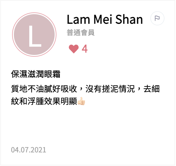 精選會員真實評價:質地滋潤但不會引起油脂粒 減淡黑眼圈眼紋 推薦所有女生使用