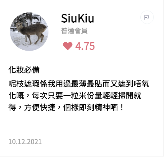 精選會員真實評價:可改善面部顏色不均勻 遮瑕能力不俗 適合任何天氣使用