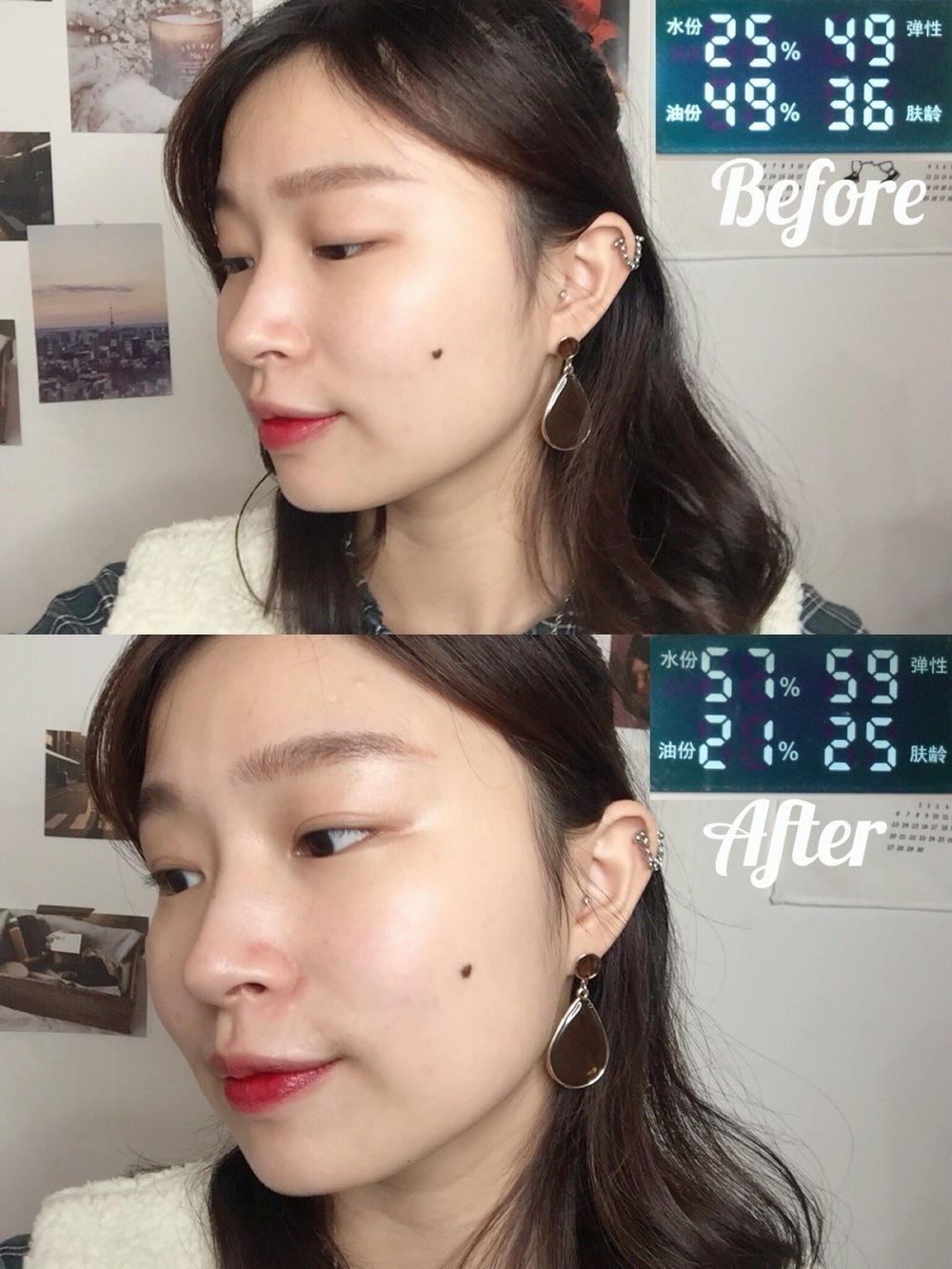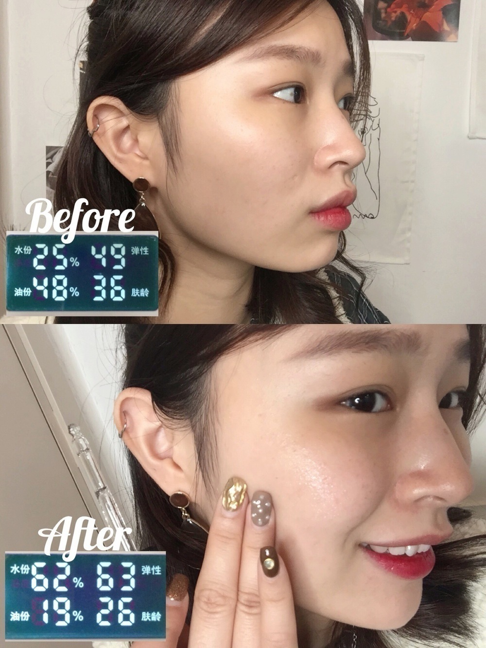 塗上產品十五分鐘後水份提升了32%,皮膚狀態變好了!面霜的保濕功效和精華一樣,表現傑出!