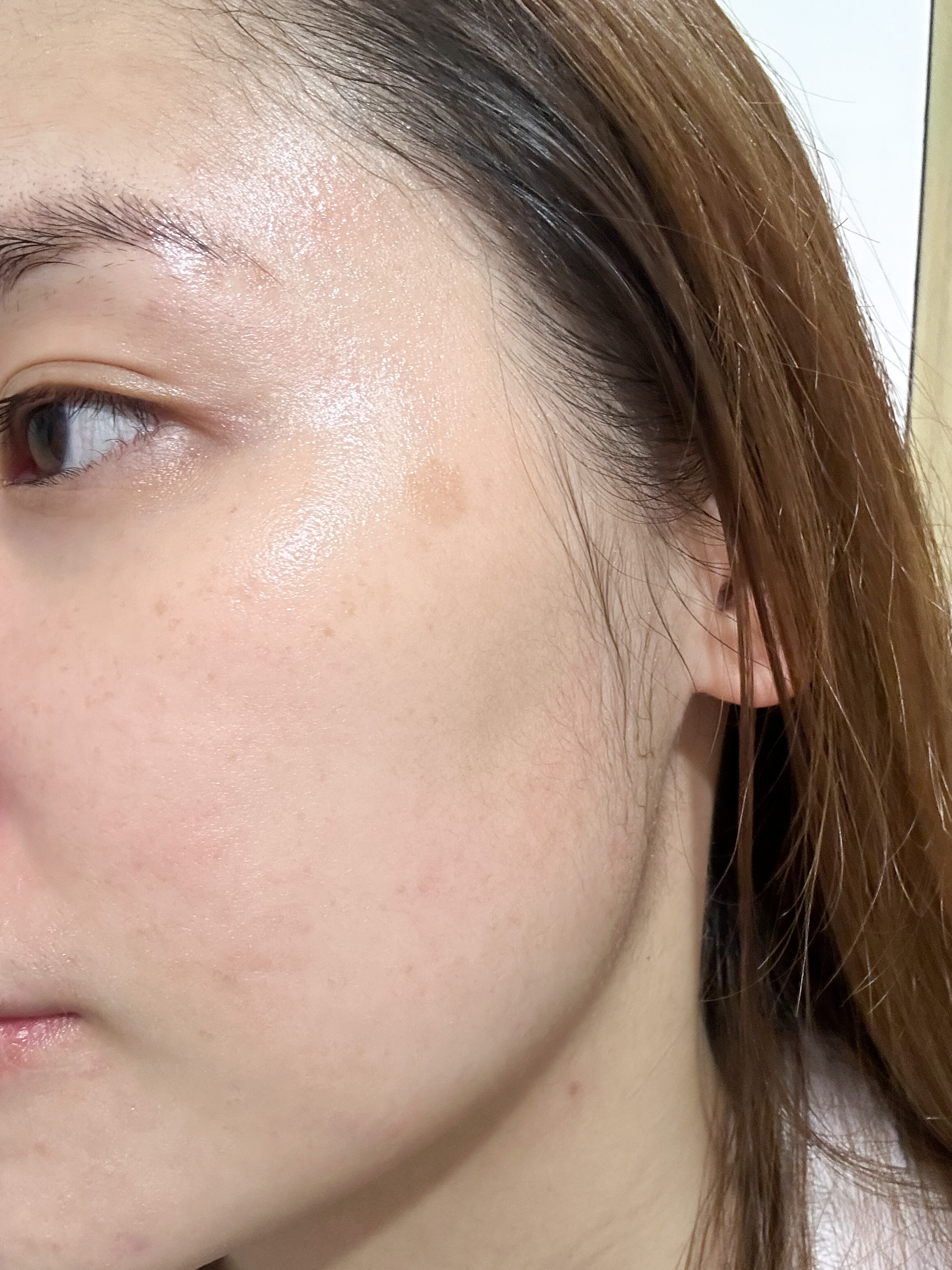 雖然搽上面後以後皮膚會顯得較亮澤,但按摩一陣子後就會發現已經吸收進皮膚入面,吸收速度比我想像中快,睡覺時不用擔心會黏淋淋