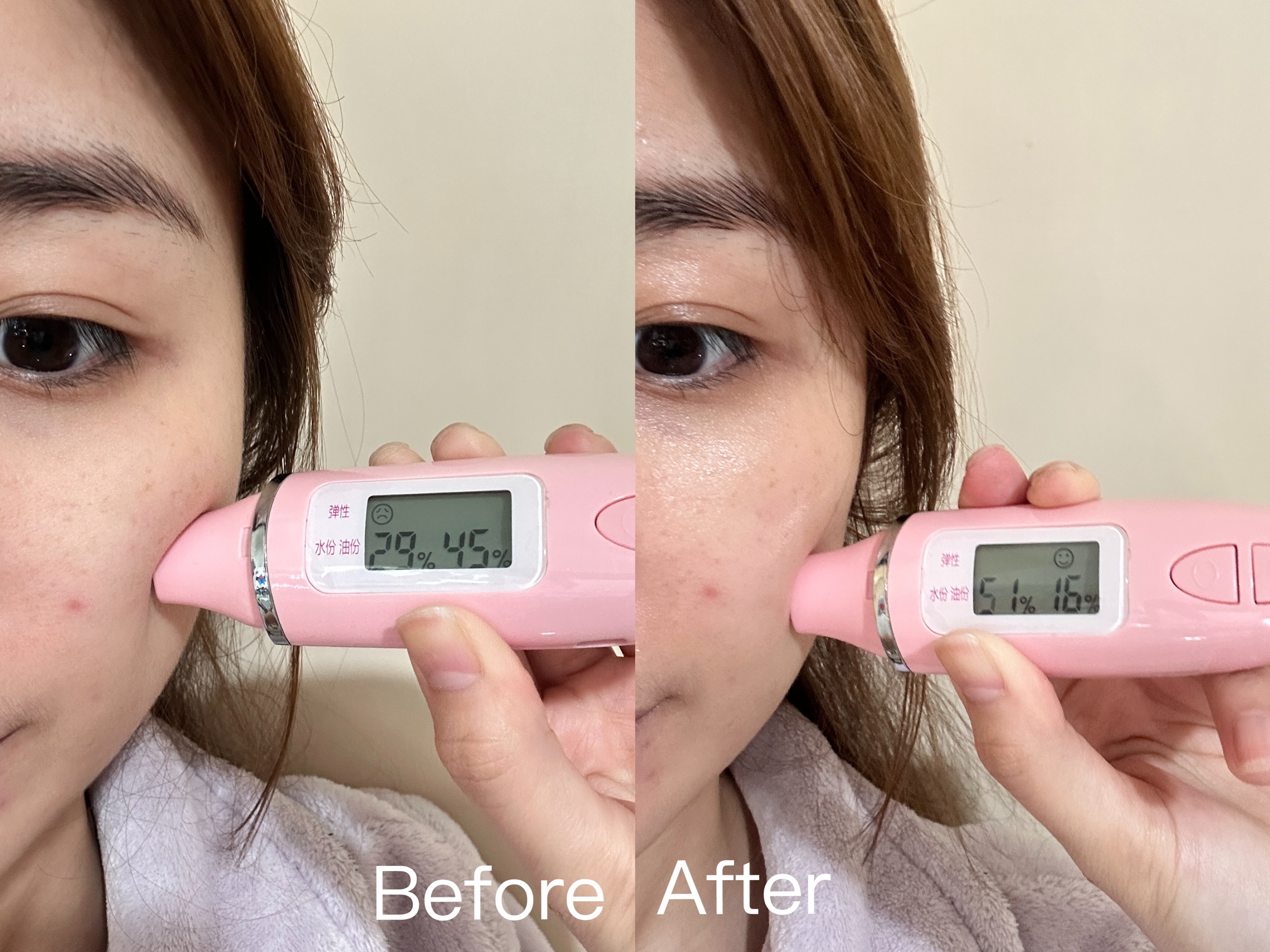 即時保濕提高了23 %,保濕效果明顯!如果是偏乾肌的朋友,晚間使用可以多搽少許用作加強滋潤皮膚~