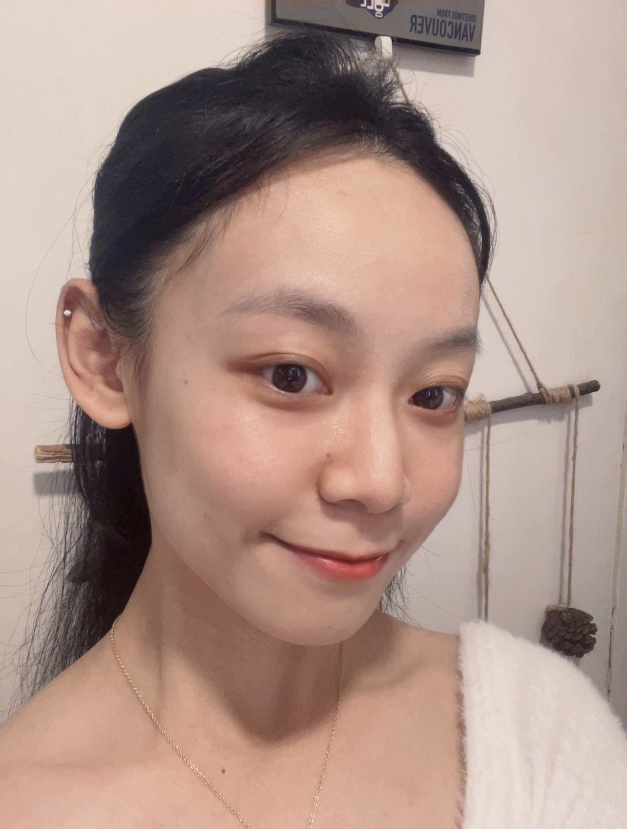 疊加兩層後,臉上的瑕疵基本上都被遮蓋,仍然自然不厚重,看起來就是本來皮膚很好的感覺。