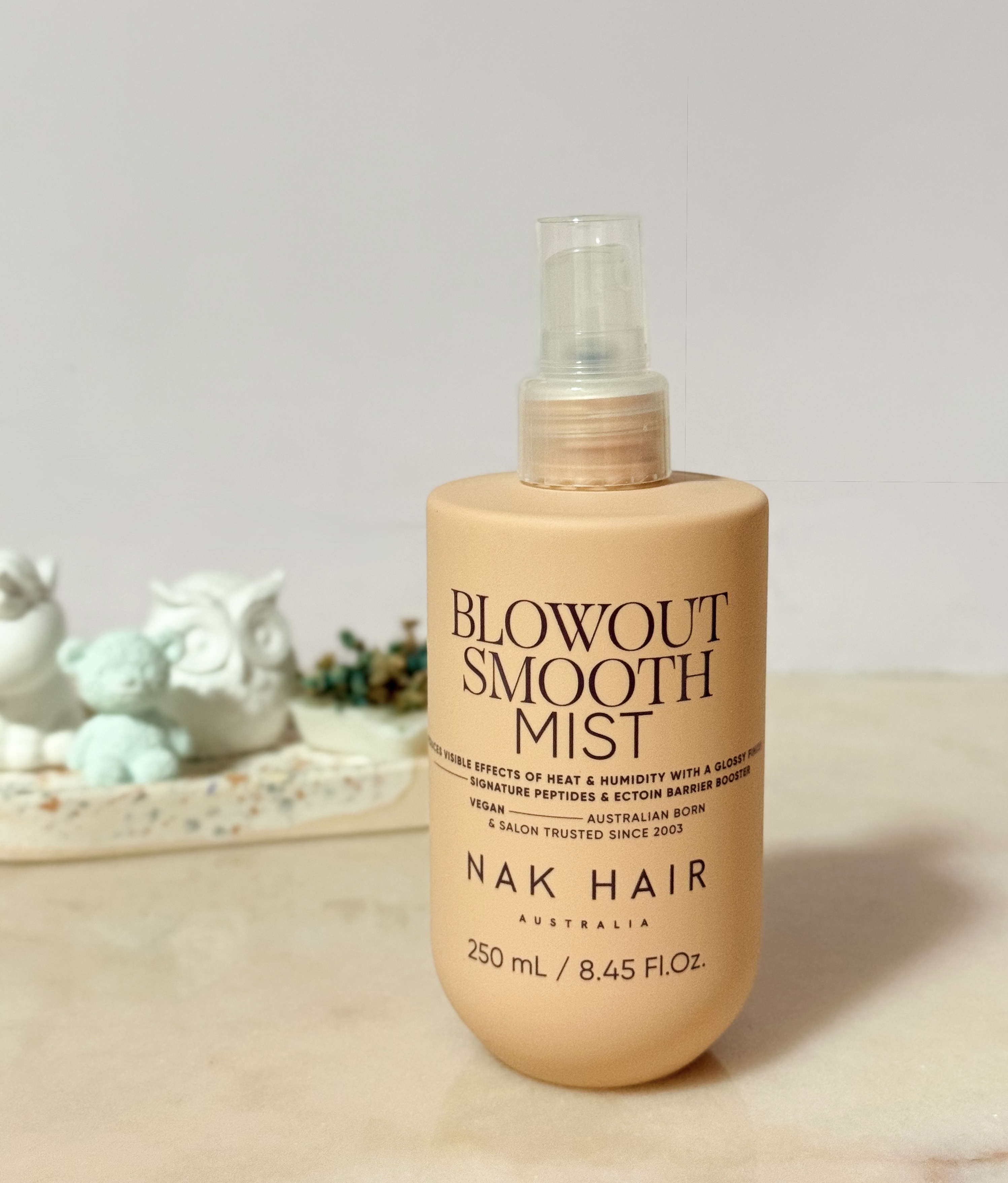 NAK HAIR Blowout Smooth Mist 係一款專為吹風造型而設嘅沙龍抗熱柔順噴霧,主打順滑、防潮與高溫防護三重功效!