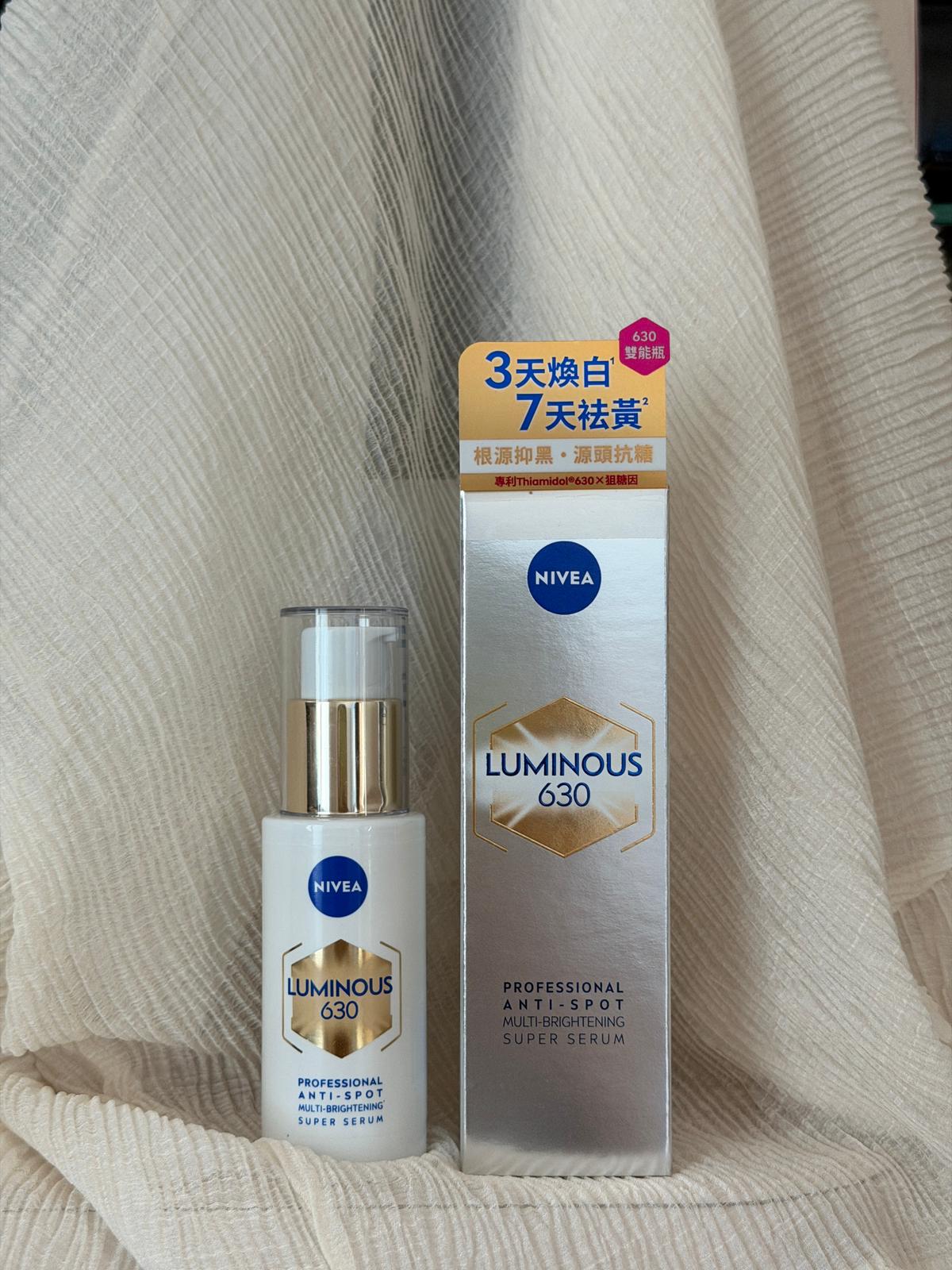 之前都聽過有朋友話NIVEA嘅LUMINOUS630系列美白淡斑效果好明顯。今次NIVEA推出LUMINOUS630專研多重淡斑透白煥膚精華,採用全新首創雙重耀白專利配方,加入最有效淡斑專利成分Thiamidol® 630根源抑制黑色素生成,狙糖因Glycostop™根源減少糖化產物,一支就做到3天煥白、7天祛黃?就等我真人實測一下係咪真的值得推薦俾大家啦!