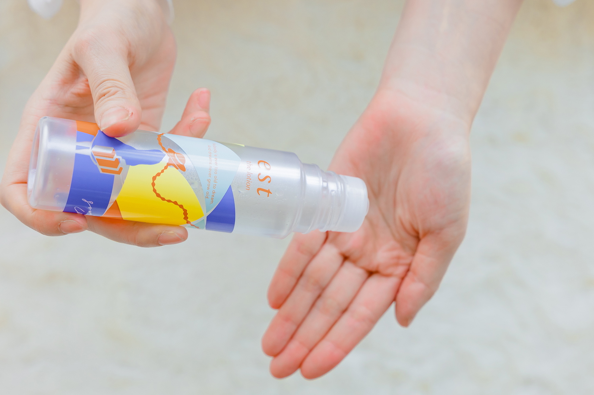 est「沙漠水」質地介於化妝水與精華液之間,質感潤滑。輕輕用手指推開可以在肌膚上輕易延展,再輕輕拍打數下更易吸收,使用後可以即時見到皮膚更有光澤水潤,乾紋減淡