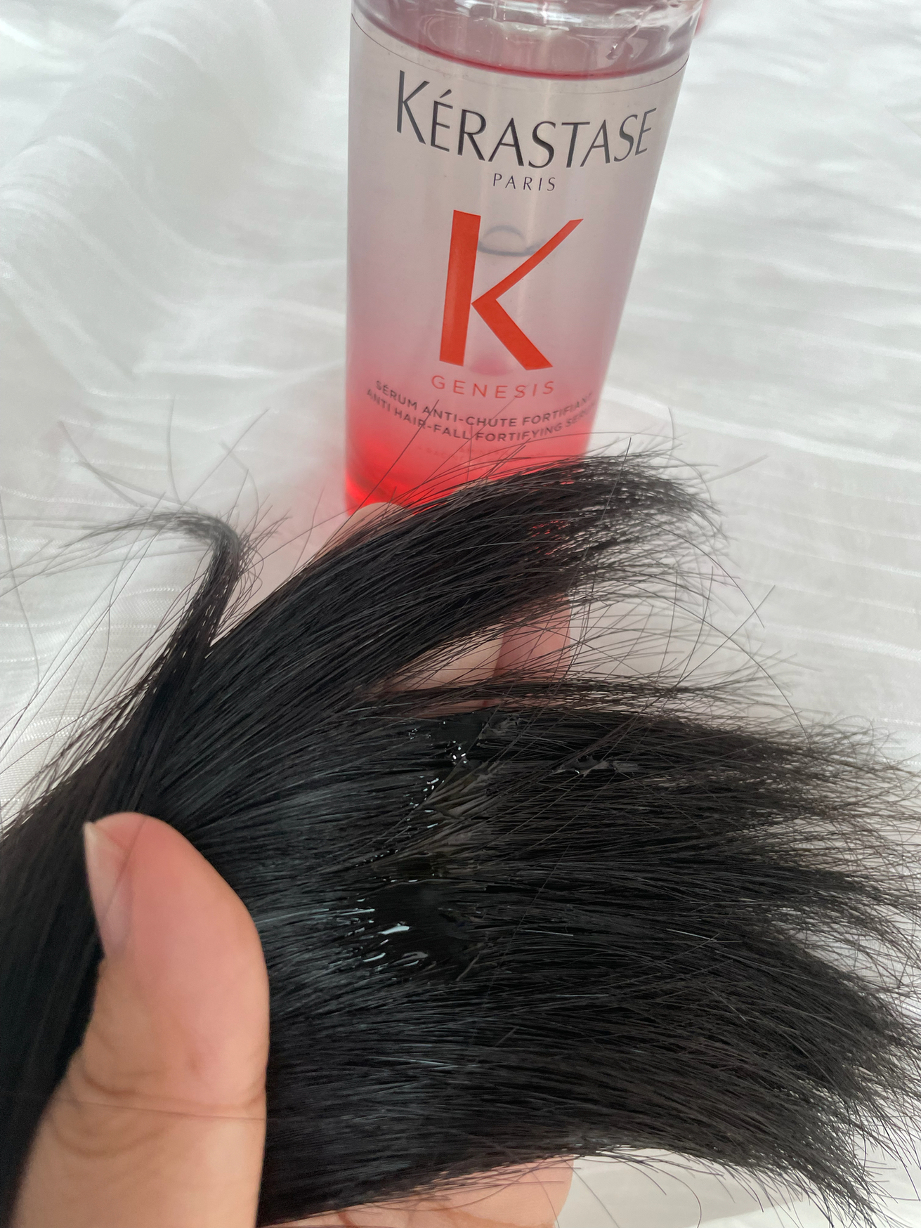 今次推薦大家試吓【KÉRASTASE GENESIS 雙重防掉髮護理系列】粉紅色包裝系列有種少女感覺,我覺得好用嘅係【KÉRASTASE 雙重防脫修護精華】幫助強韌修護髮根髮絲,洗髮後乾爽嘅頭皮上輕柔按摩,無需沖洗。每次洗髮後使用頭髮清香舒服,枕邊人都愛上清香秀髮嘅味道,再配合埋【KÉRASTASE防掉髮輕盈浴髮乳】、【KÉRASTASE防掉髮修護護髮露】更加雙重保護秀髮。