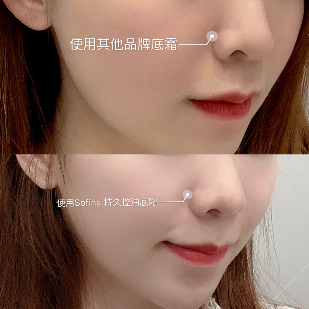 早上用了Sofina Primavista Long Keep Base UV 持久控油底霜,出外十多個小時後竟然,只有T字位有輕微出油情況!平時我臉上已經出油脫妝了!這次控油效果滿意!如果沒有使用持久控油底霜,鼻翼位置泛油,浮粉不貼服。