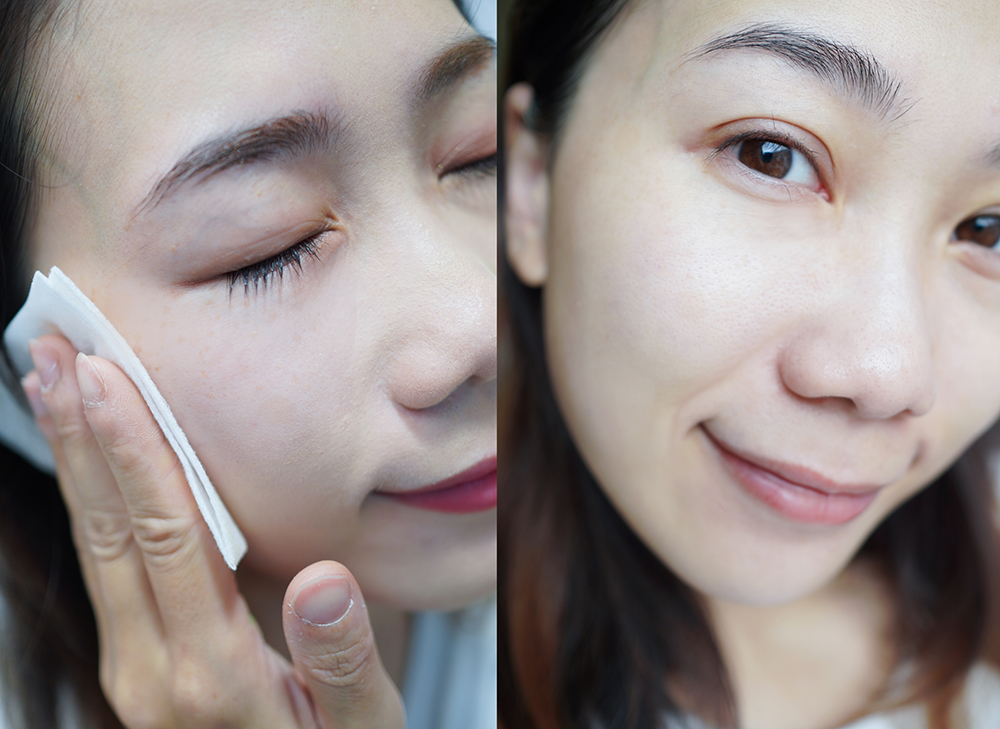 乾淨得無話可說!!!我就只用了一張較高質厚實的化妝綿,已經足夠全臉之用!最驚喜真的就是連內眼線及睫毛都能卸掉九成,餘下的細微位用棉花棒再調整便可。